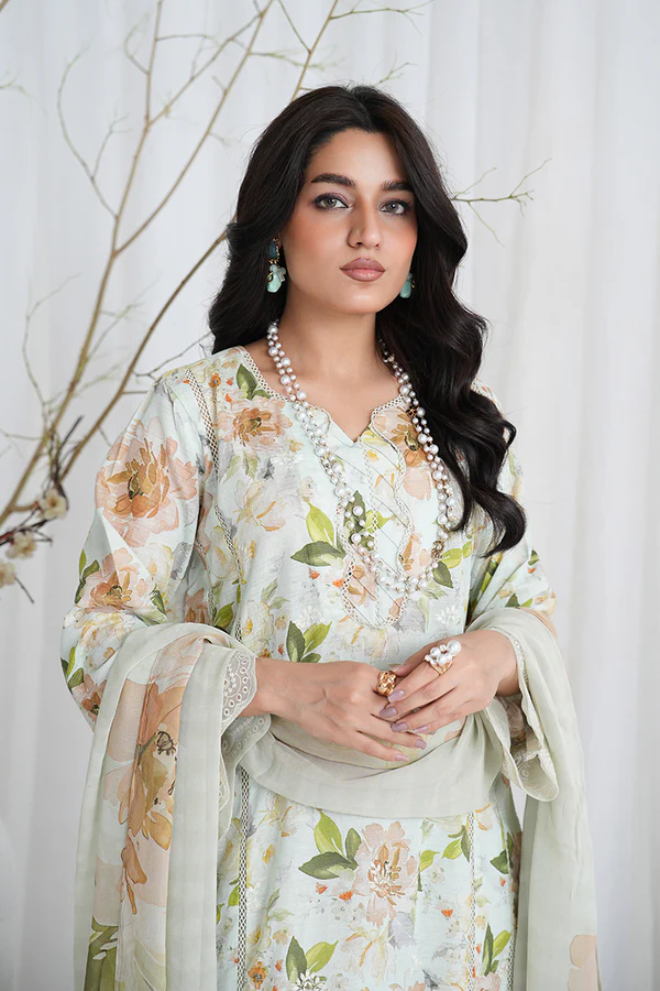 Introducing JH-841-AFR, a beautifully curated Pakistani Lawn 3-piece suit that celebrates the art of femininity, tradition, and effortless elegance. Featuring a delicate combination of Chikankari embroidery and artistic printed lawn, this ensemble is perfect for the woman who values cultural charm and modern sophistication.